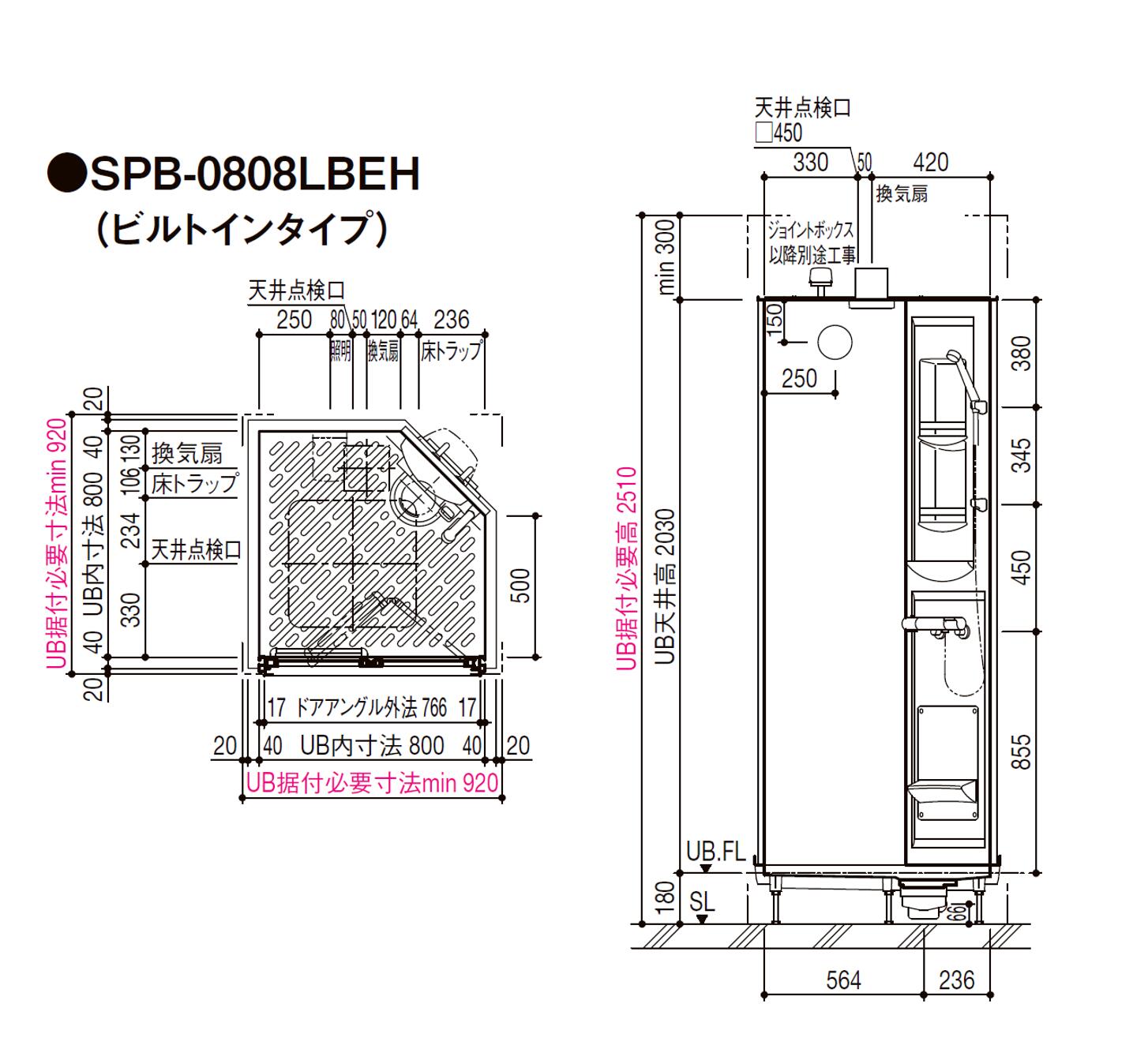 LIXIL シャワーユニット [SPB-0808LBEL-C+H] ビルトインタイプ マットパネル ★オプション変更可★ (メーカー直送)[送料無料]