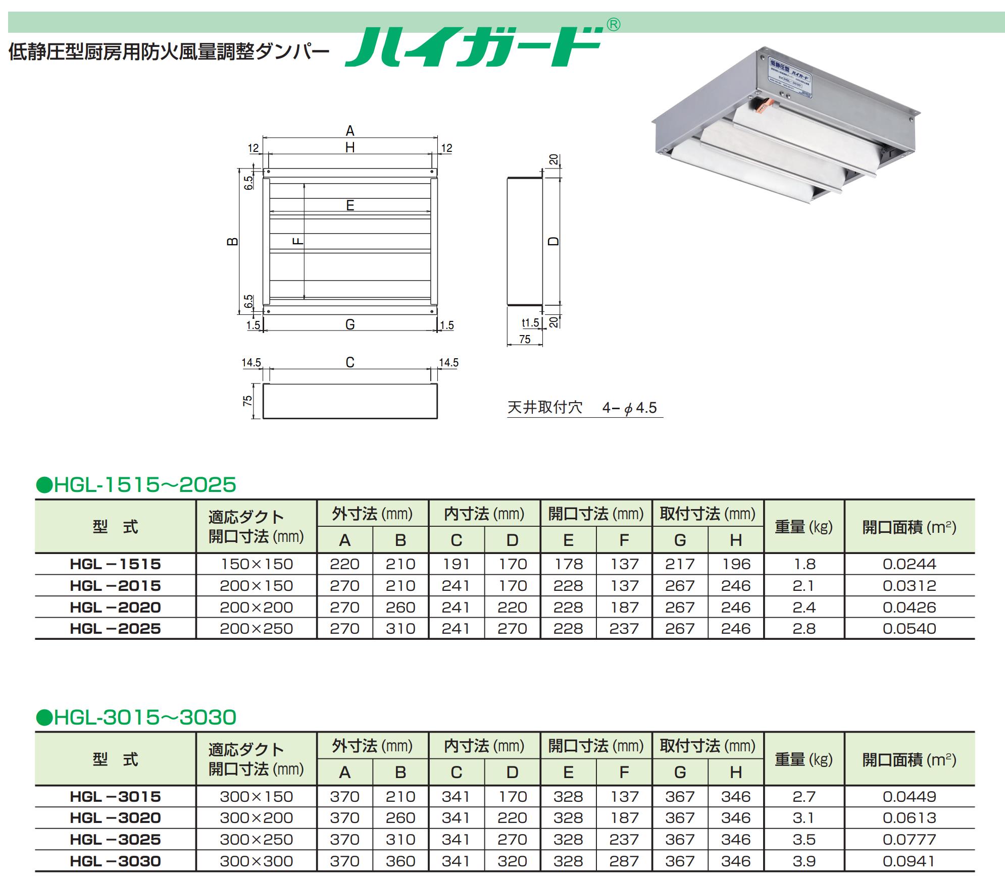 クラコ ハイガード HGL-3025 ダブルチェック 低静圧型厨房用防火風量調整ダンパー