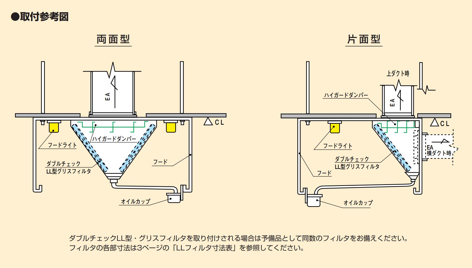 【商品仕様】 クラコ ハイガード HGL-3025 ダブルチェック 低静圧型厨房用防火風量調整ダンパー ・ダブルチェックグリスフィルタ適用品: グリスフィルタとセットされダンパーの設定は簡単です。 ・排気ダクトにダンパースペースは不要: フィルタチェンバー内に取付できますので、ダクト内nダンパースペースは必要ありません。 ・点検、清掃が簡単: グリスフィルタを外すだけでダンパーの点検ができ、点検口は不要です。 ・作動温度精度の向上: 熱感知部に高精度温度ヒューズを採用し、作動精度が飛躍的に向上しました。(作動温度185℃) ・オールステンレス: オールステンレス化によりさびる心配はなくなりました。湯気の発生する天蓋にも使用できます。
