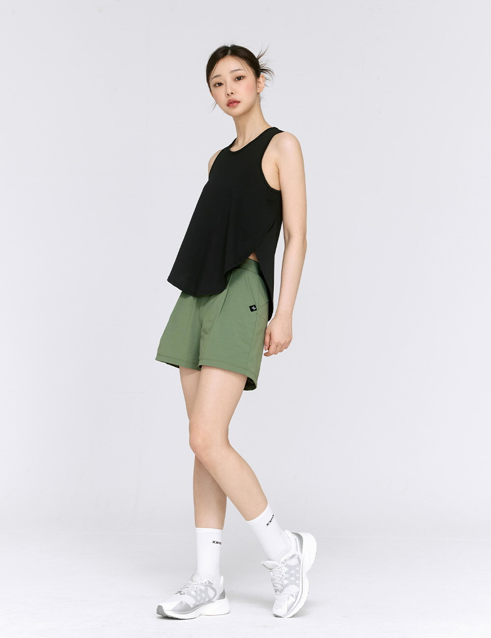 軽やかでさらさらと快適! 気になる体型をカバー エコデックス ラウンドヘム ノースリーブ シンプルで使いやすい ラウンドネック 程よい開きのラウンドネックを採用。 バインディングで仕上げ、 ヨレにくい首回りで長く着用頂けます。 肩周りの動きを 自由自在に 程よい開きの アームホール 腕の可動範囲を広げる 最適なアームホールが あらゆる動きをサポートします。 スタイルと 動きやすさを叶える サイドラップスタイル サイドのオーバーラップスタイルが 女性らしい雰囲気を演出。 深いスリットが様々な動きに スムーズに対応します。 ウエストを すっきりと魅せる ラウンドヘム 丸くカッティングした裾が ウエストをすっきりと見せます。 気になる部分をカバー 使いやすい丈感 お腹周りやY-Line、ヒップラインまで 気になる部分をカバーする丈感が ブラトップ上に さらっとレイヤードしやすいです。 持続可能な高伸縮性素材、 Sorona Agile糸を使用 とうもろこしから抽出した植物原料が 約37%含まれた化学繊維によって 製造エネルギーや音質効果ガスを減らして 環境への負担を軽減することができます。 着心地よくて お手入れしやすい 優れたストレッチ性と キックバック力 優れた伸縮性があらゆる動きをサポート 形状安定性と復元力により、 シワになりにくいです。 汗をかいてもムレにくい 1日中快適でさわやかな 着心地 汗を素早く吸収して乾かすことで 快適な着心地と着崩れのない すっきりとしたシルエットを維持します。 あらゆる 外部刺激にも強い! 優れた耐久性 汗をいっぱいかいても、 洗濯を繰り返しても さまざまな刺激に強く 長持ちできるように耐久性を高めました。 ※韓国KOTITIにて汗、洗濯、摩擦堅ろう度 テスト完了 ■お手入れについて ・ご着用いただく前に、一度洗濯してください。 ・水または30度以下のぬるま湯で手洗いしてください。 ・柔軟剤・塩素系漂白剤の仕様はお避け、中性洗剤をご使用ください。 ・色落ちや色移りする可能性がありますので単独洗濯してください。 ・つけ置きしないでください。 ・手で軽く絞りの後、風通しの良い場所で形を整えて陰干ししてください。(脱水機、乾燥機のご使用はお避けください。) ・長時間濡れたままにしておくと色がおちる恐れがあります。 ・パッドは型崩れの恐れがありますので洗濯の際は必ずお取りください。 ・素材の特性上、洗濯の際に若干の伸び縮みが起こる可能性があります。 ■ご購入前に ・お使いのモニターやスマホなど環境により 実際のカラーと画像の色味が違って見える場合がございます。 予めご了承の上、ご注文下さい。 ・お客様のモニターを通してご覧になって頂いている為、 実物を蛍光灯や自然光の下でご覧になった場合と色味が 異なる場合がありますので、 ご理解の上ご購入頂きますようお願い致します。