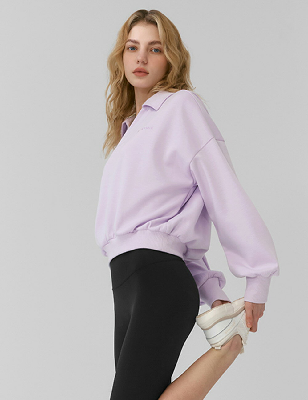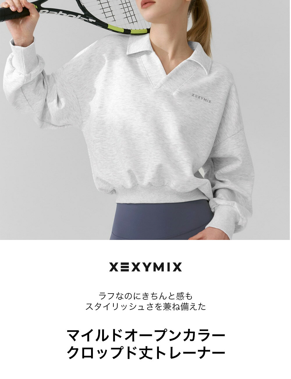 ゼクシィミックス xexymix マイルド オープンカラー クロップド丈 トレーナー スウェット ヨガウェア トップス ピラティスウェア スポーツウェア レディース トレーニングウェア フィットネスウェア ランニングウェア ジムウェア 韓国 おしゃれトレンド XFK1QL1101