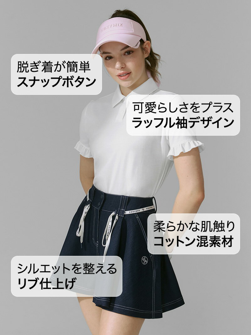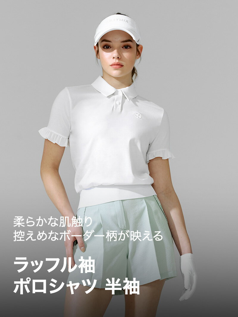 【OUTLET】ゼクシィミックス xexymix ポロシャツ 半袖 ラッフル袖 ゴルフウェア レディース かわいい すっきりシルエット 細見え ゴルファー ゴルフ女子 おしゃれ 普段着 デイリー ゼクシーミックス XXMX XFK2QS1202 【15】