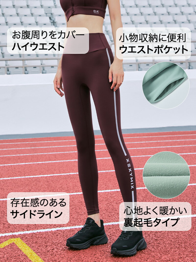 ゼクシィミックス xexymix レギンス 裏起毛 サイドライン ポケット リフレクティブ UVカット ハイウエスト ランニングレギンス レディース ヨガウェア ピラティスウェア スポーツウェア トレーニングウェア フィットネスウェア ジムウェア ゼクシーミックス xfk4ll1502