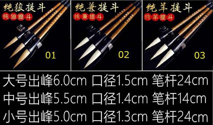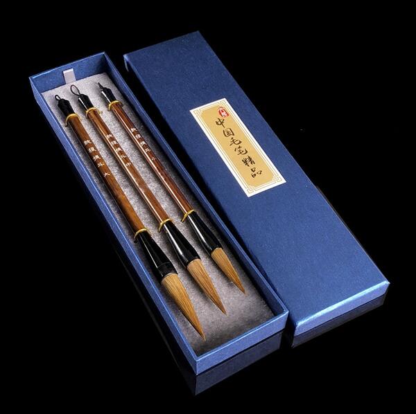 純狼毫(イタチ) 純羊毫 兼毫(イタチと羊) 唐筆湖筆 書画用 大中小3本セット 函付/毛笔狼毫兼毫羊毫斗笔套装