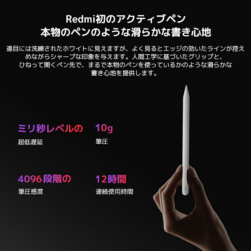 Redmi Smart Pen スマートペン タブレット用 滑らかな書き心地|ミリ秒レベルの超低遅延|独自のアルゴリズム|最大連続使用12時間|4096段階の筆圧感度|240Hzタッチサンプリングレート
