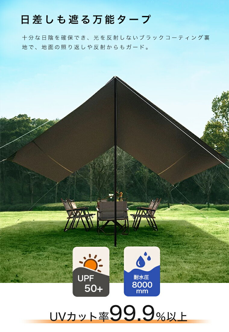 防水タープ レクタタープ 3m 4m 4.35m 5m タープテント ブラックコーティング 正方形 日よけ シェード スクエア キャンプ タープ 軽量 日除け 高耐水加工 紫外線カット 遮熱 キャノピー キャンプ コンパクト 大型 日陰 熱中症予防