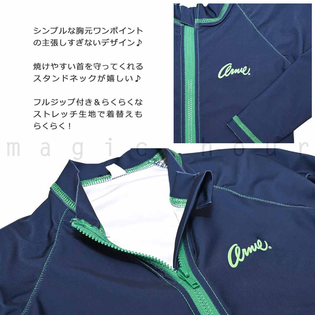 送料無料 ラッシュガード ジュニア 子供 長袖 UVカット ブランド ブランド ジップアップ フルジップ 学校 水着 男の子 ボーイズ UPF50+ 速乾 黒 青 110 120 130