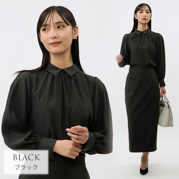 【洋服の青山】襟付き 襟 ブラウス ギャザー フリル シフォン 長袖 レディース きれいめ 上品 入学式 面接 就活 向け 制服 ブラック 黒 ホワイト 白 無地 洗える ストレッチ ビジネス オフィス カジュアル シャツ 事務服 春 夏 秋 冬 通年 トップス 制服 スーツ インナー