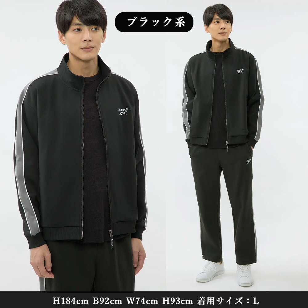 【洋服の青山】スウェット ジャケット Reebok リーボック アウター 秋 冬 ジャージ ブラック グレー 黒 灰色 メンズ ストレッチ 洗える スムースジャケット ジップ ライン ルームウェア 部屋着 アウトドア カジュアル ストリート 動きやすい 伸縮【セットアップ着用可】