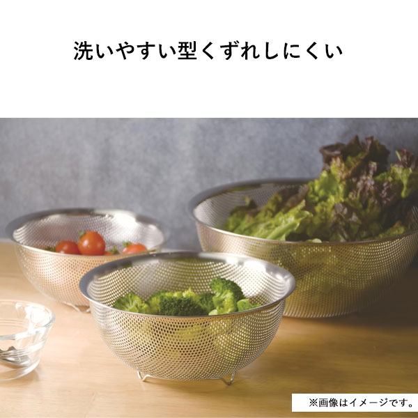 パンチングザル 27cm ステンレス製 パール金属 ベーシスライン HC-429 / 食洗機対応 ザル ざる 足付き 洗いやすい 型崩れしにくい パンチング加工 シルバー 便利 衛生的 /