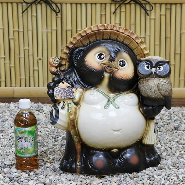 品 番 ta-0277 しがらき焼たぬき 品 名 信楽焼 13号ふくろう持ち狸 置物 【送料無料】 サイズ・重量 幅350×奥行245×高さ420mm 重さ6キロ 送料について この商品は、送料無料になります。 ※ただし、沖縄、離島、一部地域は800円掛かります。 お支払手数料(代引、コンビニ、郵ちょ手数料)は、 無料になります。 狸について 思わず微笑んでしまう信楽焼きタヌキ! 昔から狸は、福を呼ぶ縁起物と言われています。 信楽焼きタヌキは「金運」、「開運」、「勝負運」、「魔除け」、 「商売繁盛」など沢山のご利益があると言われています。 ひょうきんな顔、福々しいお腹、見ている人の心和ませる 焼き物です。信楽焼たぬきに心癒されてください。 縁起物の狸ですので新築祝、結婚祝、開店祝、還暦祝、 記念品などのギフトにも最適です。 当店の豊富な品揃えの中より相性の合ったタヌキを、 お選び下さい。 名入れについて タヌキに、文字入れ(名入れ)が出来ます。 詳しくは下記をご覧ください。 文字入れについてはこちら ギフト包装について ギフト包装、のし、メッセージカードは、無料にてさせて 頂きます。詳しくは、下記をクリックして下さい。 ギフトにもお勧めの信楽焼の狸です。新築祝、結婚祝、 開店祝、還暦祝、記念品などにピッタリです。 ギフト包装サービスについて狸への名入れはコチラ 狸一覧ページはコチラ