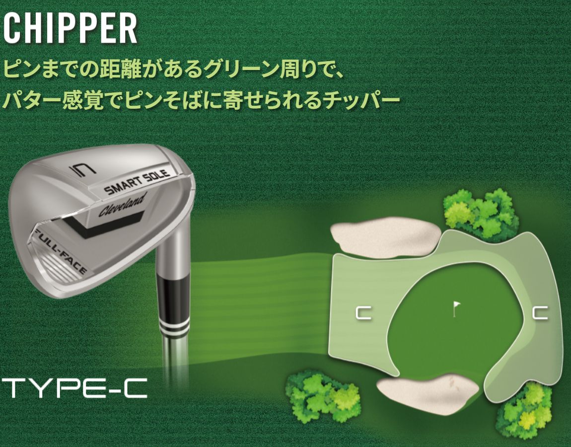商品情報 大型ヘッドで寛容性向上。 やさしくショートゲームを楽しむためのSMART SOLE FULL-FACE。 高い寛容性 FULL-FACE TECHNOLOGY オフセンターショットでも高いスピン性能を発揮 安定したアプローチ性能 THREE-TIERED SOLE DESIGN 多様なシーンでミスを軽減するワイドな3層構造のソールデザイン ■TYPE-C ピンまでの距離があるグリーン周りで、 パター感覚でピンそばに寄せられるチッパー ■TYPE-G グリーンまで距離があり、 ふわりとやさしく寄せたいギャップウエッジ ■TYPE-S バンカーも一発で ラクラク脱出できるサンドウエッジ ■TYPE-L 目の前に障害物があり、グリーンエッジからピンまでに距離がなく、高くボールを上げて止めるのに最適なロブウエッジ 掲載商品は実店舗や弊社別ネット通販店で在庫を共有しておりますため、万一お取り寄せで日数を要する際や欠品の際はご容赦ください。 メーカー希望小売価格はメーカーカタログに基づいて掲載しています