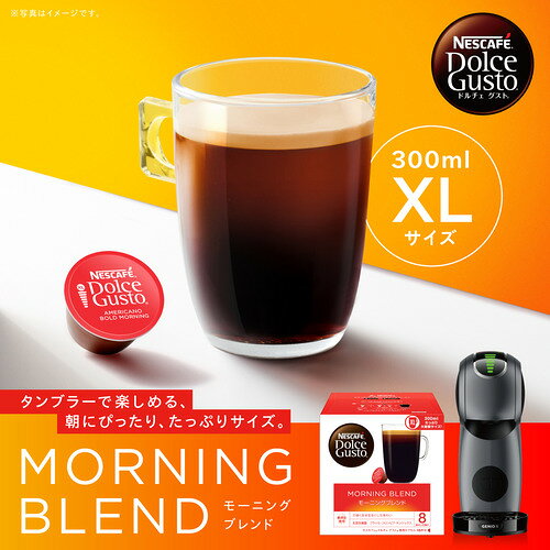 ネスレ ABM16001 ドルチェグスト モーニングブレンド 16P タンブラーサイズ Nestle NESCAFE Dolce Gusto・ネスレネスカフェドルチェグスト 16個 発売日:2022年9月1日●ドルチェグスト専用カプセル1杯ずつ手軽に楽しめるドルチェグスト専用カプセル。●大容量タンブラーサイズ1杯300mL。たっぷりの量でお得に楽しめます。●朝の目覚めにピッタリな、力強く生き生きとした味わい。お好みでミルクを注ぐと、力強い味わいはそのままに、なめらかな口当たりが楽しめます。 【仕様】本体W×D×H(mm):120×120×120重量(g):234原産国:英国