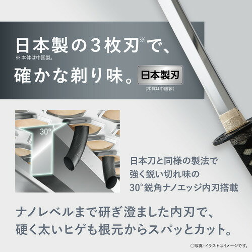 パナソニック ES-RT2N-K エントリーシェーバー 3枚刃 黒発売日:2023年6月1日●日本製の3枚刃(※本体は中国製。※)で、確かな剃り味。●ステンレス鍛造の30°鋭角ナノエッジ内刃採用で硬く太いヒゲも根元からスパッとカット●日本刀と同様の製法で強く鋭い切れ味の内刃搭載●丸みを帯びた刃面が肌に密着してやさしく深剃りできるマルチフィットアーク刃【仕様】電源:ACアダプター:8時間充電 AC100〜240V(自動電圧切替付)使用日数:約7日(※フル充電し1日1回、約3分間使用した場合の使用可能日数。ヒゲの濃さ、肌にあてる力、周囲の温度などにより使用日数は異なります。※)防水:IPX7基準(※社団法人日本船舶品質管理協会 製品安全評価センターにてIPX7基準(水深1メートルに30分間水に浸けても有害な影響を生じる量の水の浸入がない)検査をクリアしています。※)本体寸法:高さ15.7×幅6.5×奥行4.6cm(キャップを除く)質量:約165g(キャップを除く)