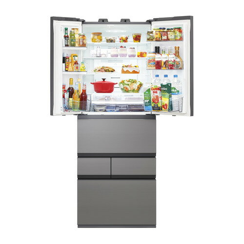 東芝 GR-Y550FZ(ZH) 冷蔵庫 6ドア冷凍冷蔵庫 (551L・フレンチドア) アッシュグレージュ発売日:2025年3月3日●みずみずしく新鮮保存「もっと潤う 摘みたて野菜室」特許技術の新鮮ツイン冷却システムを搭載。野菜室に高湿度の冷気を1日約20回以上送ることで野菜の保存に最適な湿度約95%以上の環境を保ちます。また、「ミストチャージユニット」により、冷風が食材に直接あたることを防ぎながら、湿度をコントロール。水腐れも防ぎながら約10日間新鮮なまま保存可能。さらに「使い切り野菜BOX」は「ミストチャージユニット」を搭載した野菜室専用BOX。ラップをせずに野菜をそのまま入れておくだけで、使いかけの野菜も約10日間保存できます。●長く保存した食品もおいしい「おいしさ持続上質冷凍」冷凍庫内の温度変化を抑える運転方法で霜つきを抑えて、長期間でもおいしく保存できます。●きれいな空気が庫内をループ「きれいループ」冷蔵室と野菜室の冷気の通り道で菌やニオイ成分をキャッチします。 【仕様】本体サイズ(高さ×幅×奥行)ハンドル・脚カバー除く:1833×685×699据付必要寸法(高さ×幅×奥行):1883×695×702重量:119kgドア数:6ドアドアタイプ:観音開きタイプ総有効内容量:551L冷蔵室容量:280L冷凍室容量:128L製氷室容量:20L野菜室容量:123L冷凍室位置:下段
