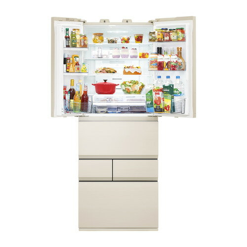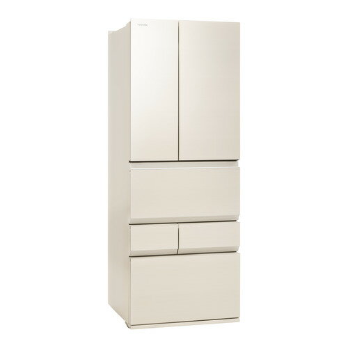 東芝 GR-Y550FZ(UC) 冷蔵庫 6ドア冷凍冷蔵庫 (551L・フレンチドア) グレインアイボリー発売日:2025年3月3日●みずみずしく新鮮保存「もっと潤う 摘みたて野菜室」特許技術の新鮮ツイン冷却システムを搭載。野菜室に高湿度の冷気を1日約20回以上送ることで野菜の保存に最適な湿度約95%以上の環境を保ちます。また、「ミストチャージユニット」により、冷風が食材に直接あたることを防ぎながら、湿度をコントロール。水腐れも防ぎながら約10日間新鮮なまま保存可能。さらに「使い切り野菜BOX」は「ミストチャージユニット」を搭載した野菜室専用BOX。ラップをせずに野菜をそのまま入れておくだけで、使いかけの野菜も約10日間保存できます。●長く保存した食品もおいしい「おいしさ持続上質冷凍」冷凍庫内の温度変化を抑える運転方法で霜つきを抑えて、長期間でもおいしく保存できます。●きれいな空気が庫内をループ「きれいループ」冷蔵室と野菜室の冷気の通り道で菌やニオイ成分をキャッチします。 【仕様】本体サイズ(高さ×幅×奥行)ハンドル・脚カバー除く:1833×685×699据付必要寸法(高さ×幅×奥行):1883×695×702重量:119kgドア数:6ドアドアタイプ:観音開きタイプ総有効内容量:551L冷蔵室容量:280L冷凍室容量:128L製氷室容量:20L野菜室容量:123L冷凍室位置:下段