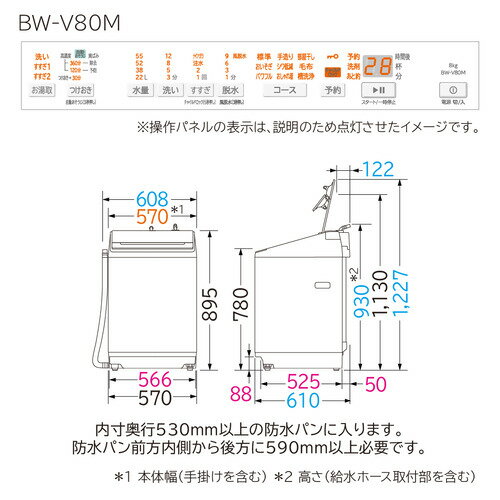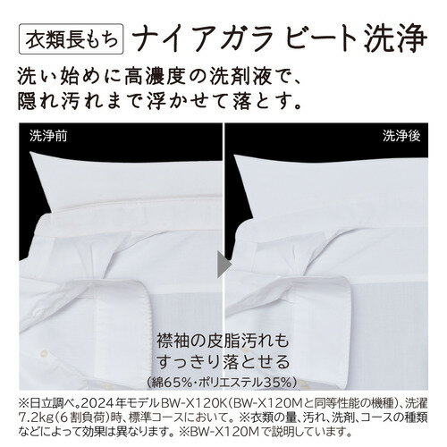 日立 BWV80M 全自動洗濯機 上開き 容量 8kg ホワイト発売日:2025年6月14日●[衣類長もち]ナイアガラ ビート洗浄高濃度の洗剤液を衣類にすばやく浸透させ、[押し洗い][たたき洗い][もみ洗い]と大流量の[ナイアガラシャワー]で洗浄することで、しつこい汚れもすっきり洗い上げます。[ビートウィングプラス(回転羽根)]が生み出すスピード浸透水流で、洗剤液の浸透を促進し、衣類8kgを約28分で洗濯します。また、高低差を抑えた[ビートスロープ]がやさしく衣類を入れ替え、布傷みを抑えます。さらに布傷みを抑えた洗い方により、非常に弱く洗う取扱絵表示の衣類も洗濯標準コースで一緒に洗えて、毎日のお洗濯をもっとラクにできます。●槽の除菌・黒カビを抑える「洗濯槽自動おそうじ」すすぎのあとにきれいな水道水で上から洗い流すことで、洗濯槽の見えない部分の汚れや菌を洗い流して、槽を除菌、黒カビを抑えます。「洗濯槽自動おそうじ」を継続使用した場合、洗濯槽クリーナーを使う「槽洗浄コース」の回数を不使用時は1から2か月に1回のところ、3から4か月に1回に減らすことができます。(※)※使用水量・消費電力量・運転時間が増えます。●投入口が低く衣類が取り出しやすいデザイン●ガンコな汚れまですっきり洗い上げる「パワフルコース」●つけおきの手間を減らす「つけおきプラス」(※)※消費電力量・運転時間が増えます。●抗菌材を使用し、清潔さに配慮「[抗菌]糸くずフィルター」●黄ばみの除去に「[つけおき]ナイアガラ ビート洗浄」高濃度つけおき360分(※)※使用水量・消費電力量・運転時間が増えます。 【仕様】本体寸法:高さ930mm×幅608mm×奥行610mm質量:約36kg設置可能な防水パンサイズ(内寸奥行):530mm以上洗濯容量:8kg洗濯時標準使用水量(定格):92L洗濯時運転時間(定格):28分運転音(洗い/脱水/乾燥):32/39/ーdB排水ホースの長さ(左出し/右出し):82/109cmコース・機能:洗濯コース・清潔コース・高濃度つけおき・お役立ちコース/機能予約機能:洗濯:3〜24時間お湯取機能:有※お湯取ホースは付属していません。お湯取機能を使用するには、別売のお湯取ホースFHS-4Aが必要となります。液体洗剤・柔軟剤 自動投入:ー