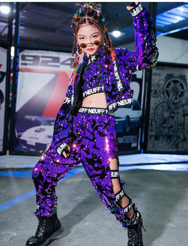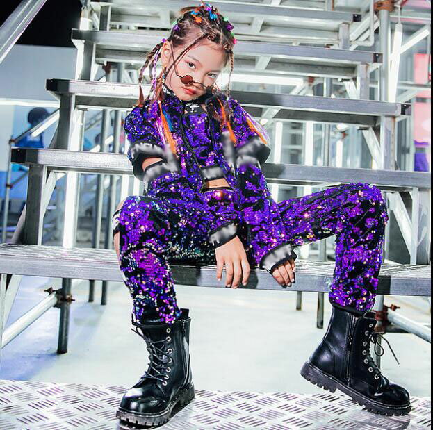 キッズダンス衣装 女の子ダンス衣装 ジャケット タンクトップ パンツス パンコール ジャズダンス衣装 チアダンス衣装応援団 団体演出服舞台ステージ衣装 単品セット対応可ヒップホップ トップスキッズモデルショー公演服 ダンス衣装120~160cm ダンス パープル
