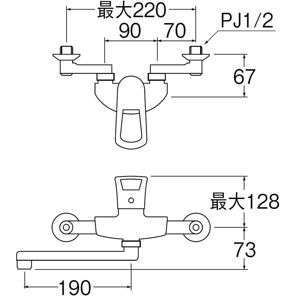 商品情報商品名シングルレバー混合栓 一般地用 《混合栓/壁付シングルレバー式》[キッチン用 蛇口交換 水栓交換]メーカー三栄水栓 SANEI 規格/品番 [K1712-13] サイズ ●本体サイズ:幅180×奥行270×高さ190mm 重量/容量 ●重量:1470g おすすめ ●水の出し止めワンタッチ:レバー1本の操作で吐水・止水の操作ができるのでツーハンドルタイプに比べて使い勝手も良くなり、さらに節水効果もアップ。●温度調節ワンタッチ:レバー左右の動きで温度調節ができる。お年寄りからお子様まで誰にとっても使いやすく、使用回数の多い水回りに最適。止水部には耐久性に優れたセラミックを使用。●操作しやすいリングハンドル:レバーハンドルがリング状になっているので指をひっかけての操作が可能。泡の付いた手でも滑らない。●シングル混合栓のしくみ:ひとつのハンドル操作で、吐水・止水ができる。レバーハンドルと連動したカートリッジによって、湯水路の開閉を加減し、吐水量と湯温を調節するしくみである。なお、シングルレバー混合栓に使用されているカートリッジについては各メーカーごとに異なる純正部品であり、カートリッジ交換の際にはメーカー名、混合栓の品番の確認が必要となる。 仕様 ●取付ピッチ:110〜220mm●パイプの長さ:190mm●タイプ:一般地用●呼び径:13●節水コア付●レバーカートリッジ:PU101-120X 梱包サイズ三栄水栓 SANEI シングルレバー混合栓 K1712