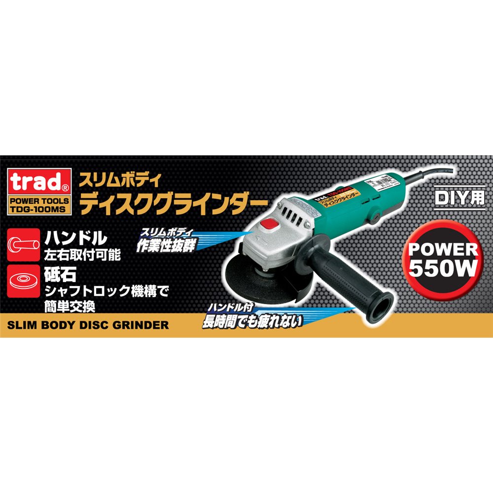 TRAD スリムボディ ディスクグラインダー [DIY 面取り バリ取り サビ落とし 仕上げ作業 切断] TDG-100MS