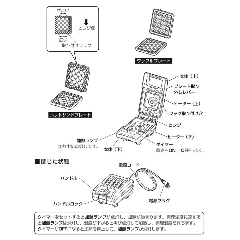商品情報商品名マルチサンドメーカーシングルサイズ ホワイト [ホットサンド ワッフル 朝食 おやつ]メーカーアイリスオーヤマ 規格/品番 IMS-502-W サイズ ●本体(mm):W132×D245×H103 重量/容量 ●本体:1.4kg おすすめ ●自宅でホットサンド・ワッフルなどが作れるマルチサンドメーカーです●1台2役で朝食にもおやつにもマルチに使えます●1枚焼きと2枚焼きがあり、ホットサンドとワッフルの2種類のプレートが付きます●別売りのプレートでドーナツやミニタルトやたい焼きやパニーニなども楽しめます●プレートは着脱可能でお手入れが簡単なので衛生的です●タイマー機能付き●タイマーをセットして、その間に他の料理を作ることができるので、忙しい朝にぴったりです 仕様 ●電源:AC100V(50/60Hz共用)●定格消費電力:550W●タイマー:10分●プレートの種類:ホットサンド/ワッフル●コードの長さ:約1.8m●保証期間:お買い上げ日より1年間 梱包サイズ