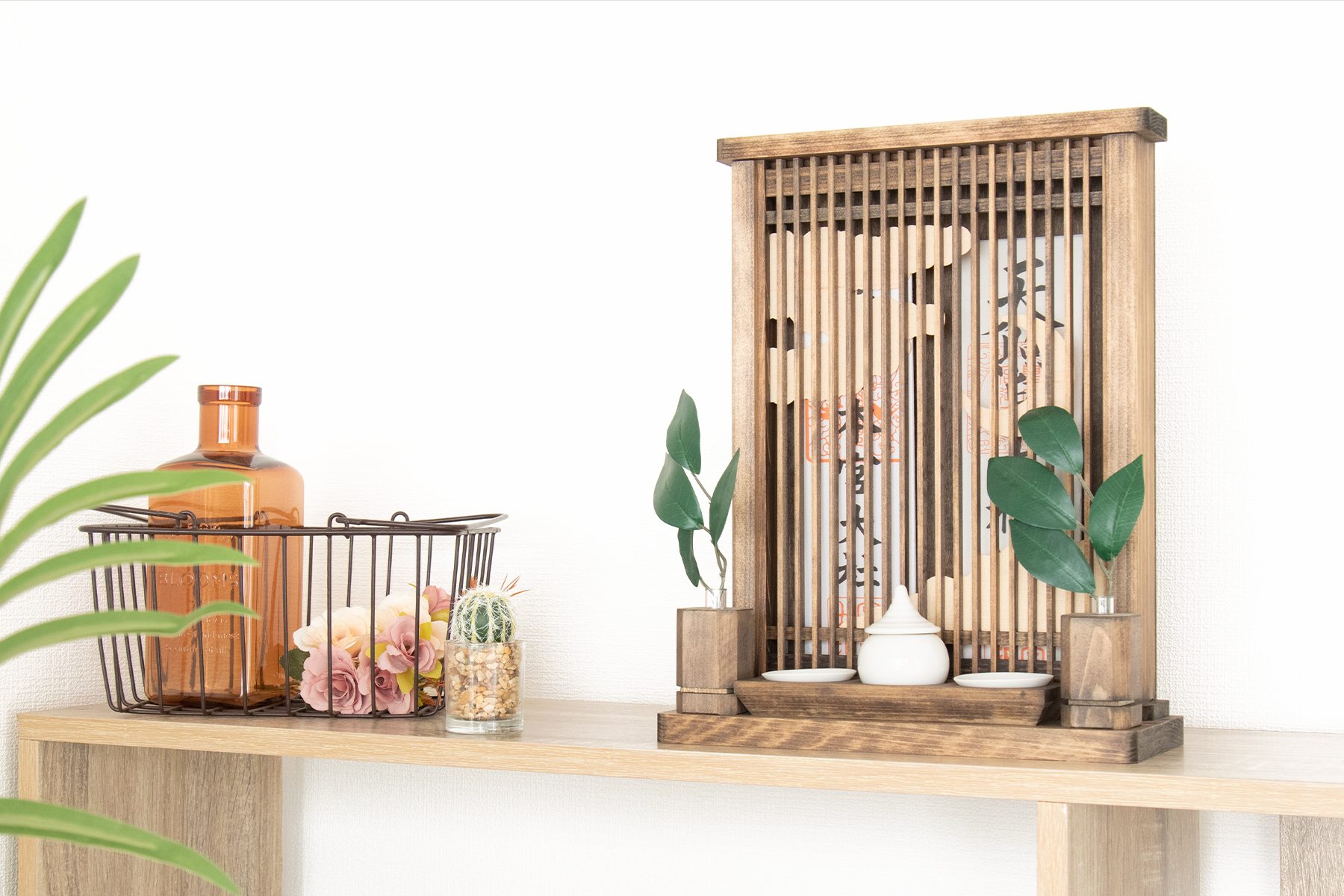 商品詳細 神棚は、和モダン・インテリア 天界の物語り 雲を照らし輝く、三日月の宵時。天と地のはざまにアマテラス様の存在と、天地創造の神話を感じて。そんな神々しいストーリーをイメージして、個性的な色付けと和のデザインをしています。雲間の向こうにお神札を収め、手を合わせ柏手を。1〜2枚のお神札を収める際には最適な、とてもコンパクトなサイズです。置いても、壁に掛けても和洋問わずお部屋になじむシルエット。 神様の近くに色々と 大きいお神札や御朱印帳なども収めやすい作りとなっており、前面が取り外せる構造です。お守りなども、お神札と一緒に納められる奥行があります。 桧から職人が「造る」 日本建築の美しさ「千本格子」と、薄い木曽桧の「突き板」を装飾に、天然植物性の塗料を優しく、手塗りした神棚。岐阜県と長野県の県境辺りで産出される、とても良質な桧材は、オイルステイン仕上げにより美しい木目を浮かび上がらせています(背面は合板)。 素焼きの陶器と桧材で出来た器を組み合わせた、神具一式です。添えれば一層華やかに。自然素材の風合いをたっぷりと、神棚と同じ和モダンカラーに浮かび上がった木目の表情は、一体ごとの個性。神様への願いは、美しい桧の神棚とともに、心を込めて。 セット内容 ・お社本体 ・榊立×2 ・水玉 ・小皿×2 ・シルク調4枚葉一対 サイズ約(cm) 神棚の大きさ:高さ32.5 幅25.5 奥行10.5 お神札が入るスペース:高さ28 幅19 奥行2.5 榊立:高さ5.5(ガラス管の先+1) 幅3.5 奥行3.5 水玉:高さ4.5 口径3.5 小皿:高さ1 幅5.4 奥行5.4 注意事項 お神札は付属いたしません。 送料 「送料ご案内ページ」をクリックしてご確認ください。神棚は、和モダン・インテリア 天界の物語り 雲を照らし輝く、三日月の宵時。天と地のはざまにアマテラス様の存在と、天地創造の神話を感じて。そんな神々しいストーリーをイメージして、個性的な色付けと和のデザインをしています。雲間の向こうにお神札を収め、手を合わせ柏手を。1〜2枚のお神札を収める際には最適な、とてもコンパクトなサイズです。置いても、壁に掛けても和洋問わずお部屋になじむシルエット。 神様の近くに色々と 大きいお神札や御朱印帳なども収めやすい作りとなっており、前面が取り外せる構造です。お守りなども、お神札と一緒に納められる奥行があります。 桧から職人が「造る」 日本建築の美しさ「千本格子」と、薄い木曽桧の「突き板」を装飾に、天然植物性の塗料を優しく、手塗りした神棚。岐阜県と長野県の県境辺りで産出される、とても良質な桧材は、オイルステイン仕上げにより美しい木目を浮かび上がらせています(背面は合板)。 清楚な神具にお供えを 素焼きの陶器と桧材で出来た器を組み合わせた、神具一式です。添えれば一層華やかに。自然素材の風合いをたっぷりと、神棚と同じ和モダンカラーに浮かび上がった木目の表情は、一体ごとの個性。神様への願いは、美しい桧の神棚とともに、心を込めて。 【セット内容】 ・お社本体 ・榊立×2 ・水玉 ・小皿×2 ・シルク調4枚葉一対 【サイズ 約(cm) 】 神棚の大きさ:高さ32.5 幅25.5 奥行10.5 お神札が入るスペース:高さ28 幅19 奥行2.5 榊立:高さ5.5(ガラス管の先+1) 幅3.5 奥行3.5 水玉:高さ4.5 口径3.5 小皿:高さ1 幅5.4 奥行5.4 【ご購入前に必ずご確認ください】お神札は付属いたしません。 【シリーズ商品は以下から各商品ページをご覧ください】 リュウジン ヤタガラス 雲 家具調 ミカヅキ(現在閲覧中) 三社 単品 三社 セット ■その他の箱宮セットはこちら