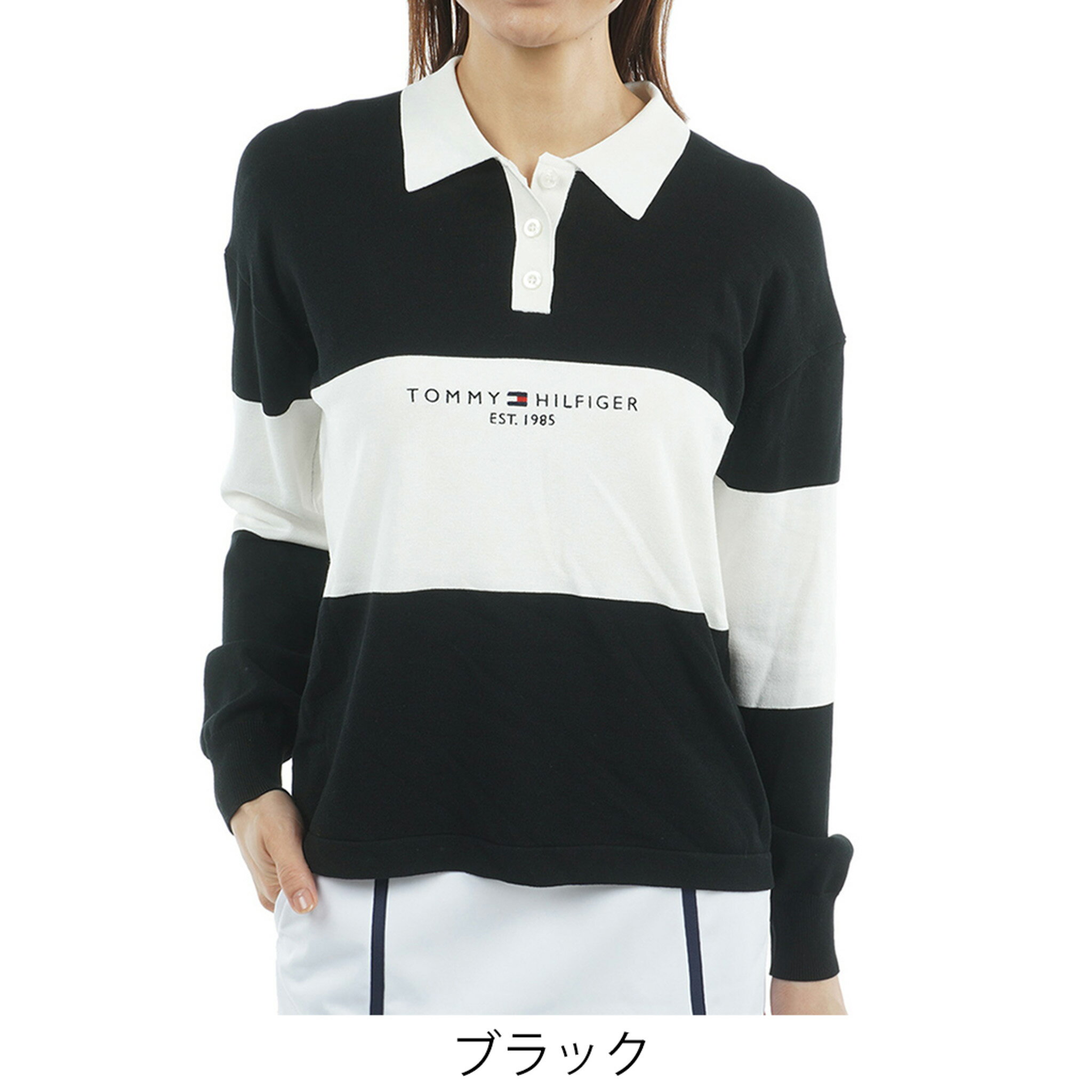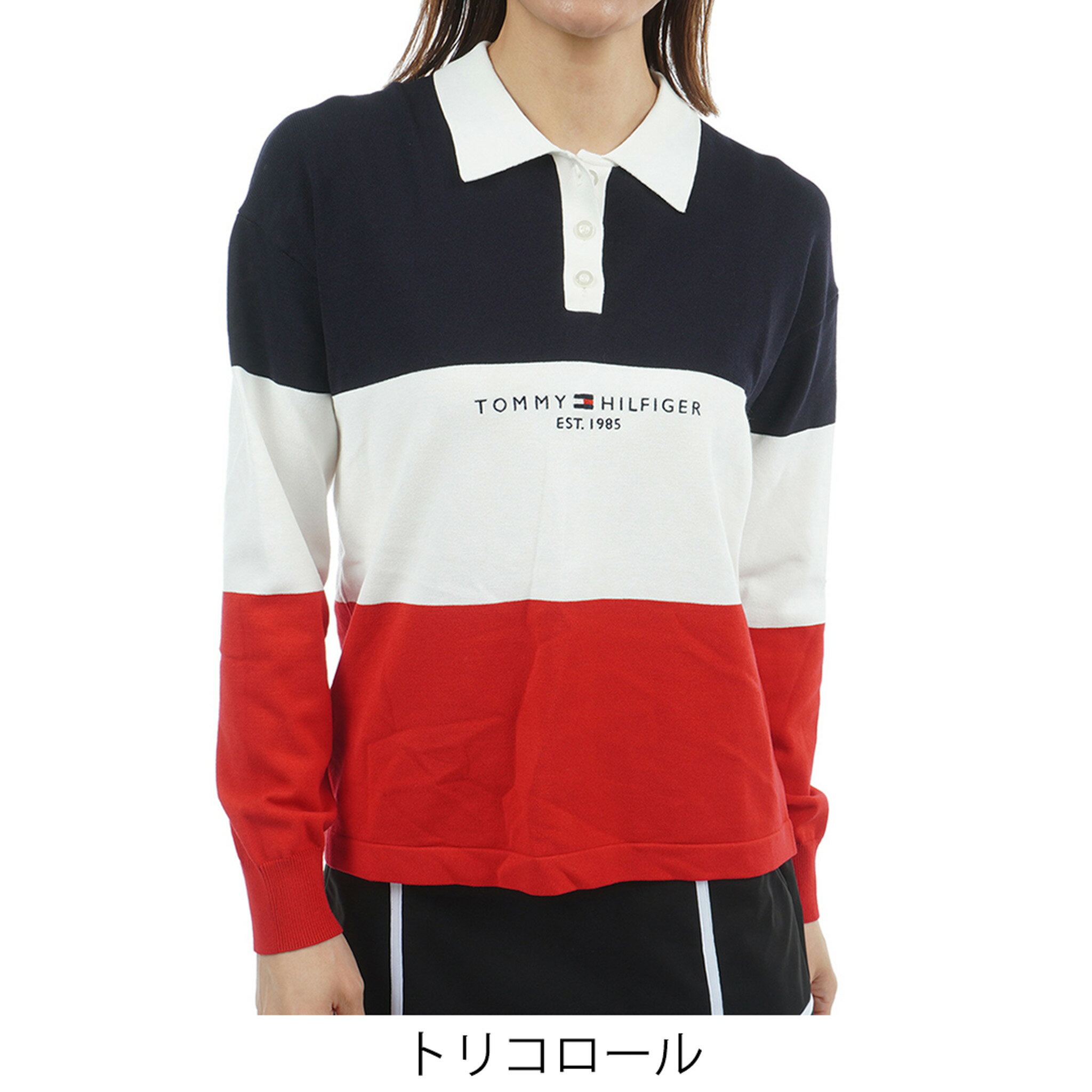 【正規販売店】[Tommy Hilfiger Golf] ラガー長袖 ニットシャツ ゴルフウェア Tシャツ レディース ゴルフ シャツ おしゃれ ワイドシルエット 長袖 秋冬 トミー ヒルフィガー ゴルフ THLA553 ヤマニゴルフ