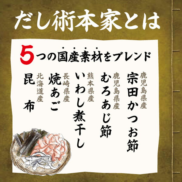 名称 だしパック 原材料名 かつおぶし粉末(鹿児島県製造)、いわし煮干粉末、粉末醤油〔しょうゆ(小麦・大豆を含む)、デキストリン、食塩〕、食塩、砂糖、そうだかつおぶし粉末、むろあじぶし粉末、昆布エキス、焼あご粉末、かつおエキス(小麦・大豆を含む)、しいたけエキス、えびエキス(大豆を含む)、昆布粉末/調味料(アミノ酸等) 内容量 200g(10g×20袋) 賞味期限 約180日(出荷時目安) 保存方法 直射日光、高温多湿を避け、常温で保管してください。 販売者 株式会社やます 千葉県市原市国分寺台中央7-16-2 製造者 かね七株式会社 富山市水橋畠等297 栄養成分表示(100gあたり)推定値 エネルギー/302kcal たんぱく質/43.0g 脂質/4.7g 炭水化物/22.0g 食塩相当量/22.8g その他特徴 ※本品製造工場では、さばを使用した製品を製造しています。《調理方法》●みそ汁:4人前(水600cc)●うどん:1人前(水500cc)その他、雑炊、煮物等の料理にご利用いただけます。