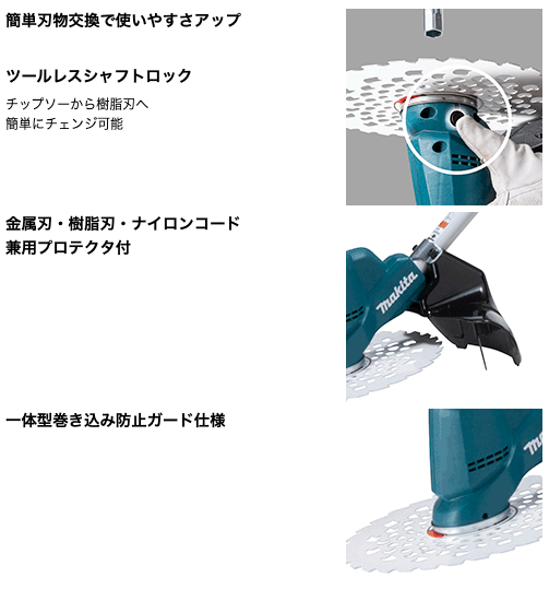 配送会社は福山通運になります。 商品情報 メーカー名 マキタ(Makita) モデル MUR191UDRG ハンドル形状 Uハンドル 分割棹 電源直流18V 草刈刃Φ230mm 刈込方式DCホワイトチップソー 回転数(min-1 )[回転/分] 高速:0〜6,000中速:0〜5,100低速:0〜3,500 1充電当たりの連続運転時間(目安・金属刃)※1 高速:約1時間20分 中速:約1時間50分 低速:約4時間 本機寸法(長さ×幅×高さ)1,836mm×635mm×471mm 質量※23.5kg(バッテリ含) 標準付属品・バッテリ(BL1860B)x1・急速充電器(DC18RF)・チップソー・飛散防護カバー・刈刃カバー・肩掛けバンド・保護メガネ・ボックスドライバー・六角棒スパナ4・アクセサリバッグ ナイロンコード用飛散防護カバー標準付属飛散保護カバー共通 ナイロンコードカッタ(別売)A-58241 らく巻きフラットナイロンカッタ(別売) A-79435「新構造」の外巻き式、差して巻くだけでコード交換が可能 樹脂刃ベースセット品(別売)A-68323(Φ230) 両肩バンド(別売)A-72229 キーワード草刈り機、草狩機、草狩り機、刈払機、仮払機、刈払い機、仮払い機 ※1 連続運転時間は満充電時の目安です。(無負荷時)/金属刃使用時※2 チップソー、プロテクタ、肩掛けバンド等を除く。