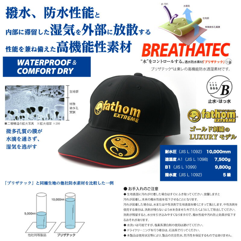 fathom EXTREME 透湿・防水・撥水 フィッシングキャップ 3Dロゴ Gold 釣り用帽子 磯釣り 船釣り ファゾム