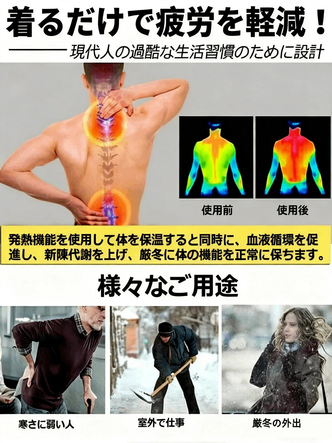 材 (外側):防水ポリエステル (中身):ダウンコットン セット内容:ジャケットのみ 男女兼用 即暖:電源入れて約3秒 ワンスイッチ:強・中・弱の温度ワンスイッチで切り替えるする事が可能! サイズ:写真ご参考 【速暖材料】:電源入れて約3秒!マイクロカートンファイバーで熱伝導が実現です。 【スイッチ】:電源のON/OFFはボタンで一つ!強・中・弱の温度設定は電源の色で簡単にわかる! 【適用場所】:ゴルフだけでなく、釣り・ウォーキング・バイクツーリング・スポーツ観戦・通勤通学・屋外作業など、様々な場面で使用が可能です. 5V/2.5Aの10000mAh以上のモバイルバッテリーをおすすめします。 ※仕様は改善の為に予告なく変更する場合があります。 ※弊社商品は全て実物撮影を行っておりますが、色合いはモニター環境によりどうしても見え方が違ってしまいます。事前にご理解頂けますようお願い申し上げます。 ※大量の注文が必要な場合は、割引を提供することができます。カスタマーサービスに連絡してください。 メーカー希望小売価格はメーカーサイトに基づいて掲載していますメーカー希望小売価格はメーカーサイトに基づいて掲載しています