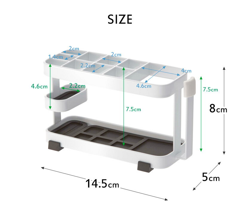 山崎実業 tower トゥースブラシスタンド ワイド タワー はこんな商品です。 歯ブラシ、歯磨き粉のチューブ、タンブラー、歯間ブラシなどのオーラルケアアイテムをまとめて収納できるトゥースブラシスタンド ワイドです。 シンプルなデザインとスチールの無機質なフレームがいつものサニタリーをおしゃれに演出します。 フレームに触れる歯ブラシの柄の面積も少なく、タンブラーの水滴も切りやすい形なので、使用後でも乾きやすく衛生的です。 ●送料無料です。 ●北海道・沖縄・離島は追加送料がかかります。注文確認後、送料修正しご案内いたします。 この商品はラッピング可能です。(+110円)ご希望の方は[ラッピングする]を選択のうえ、ご注文ください。tower トゥースブラシスタンド タワーワイド タンブラーや歯間ブラシも一緒に収納スタイリッシュでワイドな歯ブラシスタンド。歯ブラシ、歯磨き粉のチューブ、タンブラー、歯間ブラシなどのオーラルケアアイテムをまとめて収納できるトゥースブラシスタンド ワイドです。シンプルなデザインとスチールの無機質なフレームがいつものサニタリーをおしゃれに演出します。 フレームに触れる歯ブラシの柄の面積も少なく、タンブラーの水滴も切りやすい形なので、使用後でも乾きやすく衛生的です。 tower シンプルなカラーと、なめらかなスチールのフレーム。「tower」シリーズは、日常に役立つアイデアで実現した高い機能性と、おしゃれでモダンなデザインが人気の生活雑貨です。 いろんな雰囲気のお部屋に合わせやすいモノトーンカラーのアイテムも多く、日々の生活に馴染みやすく、使いやすいのも特長のシリーズです。 2カラーのバリエーション カラーバリエーションは「ホワイト」と「ブラック」の2色。洗面スペースの雰囲気やインテリア・雑貨に合わせて選べます。 まとまりのある収納 歯ブラシ6本、歯磨き粉のチューブ、タンブラー、歯間ブラシ3本がこのスタンド1つに収納できます。スペースの限られたサニタリーでも、ご家族みんなのオーラルケアアイテムがかさばることなく、すっきりとしたまとまりある印象に。 使いやすいカタチ 上部のフレーム、底面のシリコンマット共にしっかり区切られており、歯ブラシが倒れないような仕様になっています。歯間ブラシは歯ブラシに比べ短いものも多いため、使いやすさを考えて収納部の底面を上げました。 スタンドのサイドスペースは、水切りができるタンブラーホルダーとして有効活用し、タンブラーにキズがつかないようシリコンキャップを付けています。 いつでも清潔に シリコンのマットは取り外して洗うことができるので、とても衛生的。サッと洗って清潔さを保てるという安心感は、毎日使うものだからこその嬉しいアイデアです。 また、付属のクッションを裏面に取り付けることで、スタンド自体のスリップを防止し、設置場所へのキズの防止にもなります。 サイズ ● 製品の仕様 ○ 商品名 tower トゥースブラシスタンド ワイド ○ サイズ 約 幅14.5 × 奥行き5 × 高さ8 cm ○ 重 量 約 310 g ○ 素 材 フレーム:スチール(ユニクロメッキ+粉体塗装) マット・キャップ:シリコン樹脂 ○ カラー ホワイト / ブラック ○ 入 数 1個 ○ 備 考 付属品・・・クッション 4個 ■注意点 ※安定感のある平らな場所に設置し、ご使用ください。 ※商品の色は、画像と実物とでは多少異なる場合がございます。色・イメージが違う等の理由による返品は一切お受けできません。予めご了承ください。 「tower」のアイテムをもっとさがす 「tosca」のアイテムをさがす