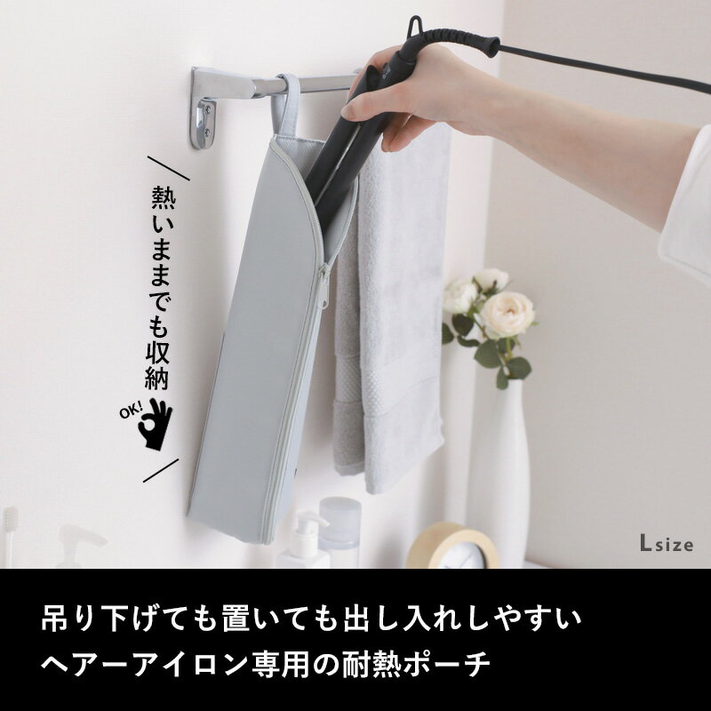 山崎実業 tower 耐熱ヘアーアイロンポーチ タワー M / Lはこんな商品です。 タオルバーや収納扉の取っ手に吊り下げて使えるヘアーアイロン専用の耐熱ポーチ。 ポーチ内側には耐熱性のある生地を使用し、使用中の一時置きや使用直後の熱いままのヘアアイロンも収納することができます。 吊り下げても置いても出し入れしやすく、ヘアセットもスムーズに。 旅行や出張などの持ち運びにも便利な収納ポーチです。 ●北海道・沖縄・離島は追加送料がかかります。注文確認後、送料修正しご案内いたします。 JAN:4903208013819 JAN:4903208013833tower 耐熱ヘアーアイロンポーチ タワーM / L タオルバーや収納扉の取っ手に吊り下げて使えるヘアーアイロン専用の耐熱ポーチ。ポーチ内側には耐熱性のある生地を採用し、使用中の一時置きや使用直後の熱いままのヘアーアイロンも収納することができる優れものです。 ファスナー式で、吊り下げたままでも置いておいても出し入れしやすく、ヘアセットをスムーズにこなせます。 外側にはファスナー付きのポケットが付いているので電源コードもまとめてスッキリ収納。旅行や出張など持ち運びたいときにも便利に使える収納ポーチです。 お使いのヘアーアイロンに合わせて、MサイズとLサイズの2種類からお好みでお選びいただけます。 ヘアーアイロンを吊り下げて収納できる専用アイテム。洗面所のタオルバーや収納扉の取っ手などにストラップで取り付けるだけの簡単仕様です。吊り下げたまま出し入れはスムーズに。コードを出せるスリットがデザインされているので本体はポーチに入れたままコードはコンセントに繋ぐことができます。 カバーで覆うことで、ホコリ避けはもちろん、お子様やペットがいるご家庭でも安心です。 ポーチ内側は、約300℃までOKの耐熱性のある生地を使用。熱いままのヘアーアイロンを収納いただけます。使用中の一時置き、使用直後の収納も可能な便利仕様です。冷めるまで待つ必要がないので、忙しい朝もスムーズに片付けることができます。 外側のファスナー付きポケットには電源コードをまとめてスッキリ収納。旅行や出張などの持ち運びにも便利な専用ポーチです。 ヘアーアイロンにも長さや太さはいろいろ。お使いのものに合わせてMサイズとLサイズ、お好みの大きさをお選びいただけます。 <収納可能なヘアーアイロン> 【Mサイズ】ストレートアイロン(ミニアイロン) 【Lサイズ】ストレートアイロン・カールアイロン・ブラシ型アイロン ※ヘアーアイロンのサイズや形状によっては収納できない物もあります。 〇耐熱トレー付きヘアーアイロンスタンド タワー 〇マグネット仕切り付きヘアーアイロンホルダー タワー 〇タオル掛け上ドライヤー&ヘアーアイロンホルダー タワー ⇒ 商品カテゴリー>ドライヤー・ヘアアイロン収納 ⇒ 「ヘアアイロン」をお探しならこちら ⇒ 洗面エリアの整理整頓はtowerにおまかせ [ NEW ] 大人気のtowerなど山崎実業の最新アイテムはこちら ●商品の詳細● 品 名 tower 耐熱ヘアーアイロンポーチ タワー M / L サイズ 【M】 約 幅11 × 奥行12 × 高さ33.5cm(ストラップ含む) 約 幅11 × 奥行12 × 高さ29cm(ストラップ含まず) 【L】 約 幅11 × 奥行12 × 高さ41.5cm(ストラップ含む) 約 幅11 × 奥行12 × 高さ37cm(ストラップ含まず) [内寸(M/L共通)] 底面:幅9.5 × 奥行5cm、ポケット:幅9 × 高さ18cm コード用スリット:幅1~1.8 × 奥行2.5cm ストラップ内周:13cm 耐荷重 【M / L共通】約 1kg(静止荷重) 材 質 表地:ポリエステル裏地:グラスファイバー 重 量 【M】約 90g【L】約 105g 耐 熱 【M / L共通】約 300℃(裏地のみ) カラー ライトグレー/ブラック 入 数 1個 備 考 <収納可能なヘアーアイロン> 【M】ストレートアイロン(ミニアイロン) 【L】ストレートアイロン・カールアイロン・ブラシ型アイロン ※ヘアーアイロンのサイズや形状によっては収納できない物もあります。 ■注意点 ※ヘアーアイロン使用後は、必ずプラグをコンセントから抜いて収納してください。 ※電源を入れた状態のヘアーアイロンを収納したまま放置しないでください。 ※お使いになるヘアーアイロンの説明書をよく読んでご使用ください。 ※吊り下げて使用する際は、ボタンがきちんと留まっており、安定していることを確認の上ご使用ください。 ※ご使用直後の熱いヘアーアイロンを収納すると、製品の外側が熱くなりますのでご注意ください。また、その状態で熱に弱いものに密着させたり、バッグに収納することはお避けください。 ※本体表地・ポケットは耐熱生地ではありません。熱いヘアーアイロンが接触しないようご注意ください。 ※ストーブやコンロなど火の近くに置かないでください。 ※水濡れや摩擦により色落ち・色移りする場合がありますのでご注意下さい。 ※小さなお子様やペットの手が届かない場所でご使用ください。 ※耐荷重制限はお守りください。 ※本製品は防水加工されていません。また、落下等の衝撃から収納物を保護するものではありません