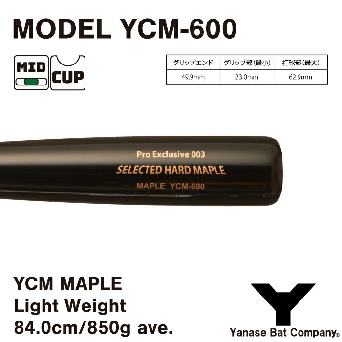 ヤナセ YCM-600 硬式木製バット YCM LIGHT WEIGHT シリーズ 84.0cm 850g平均