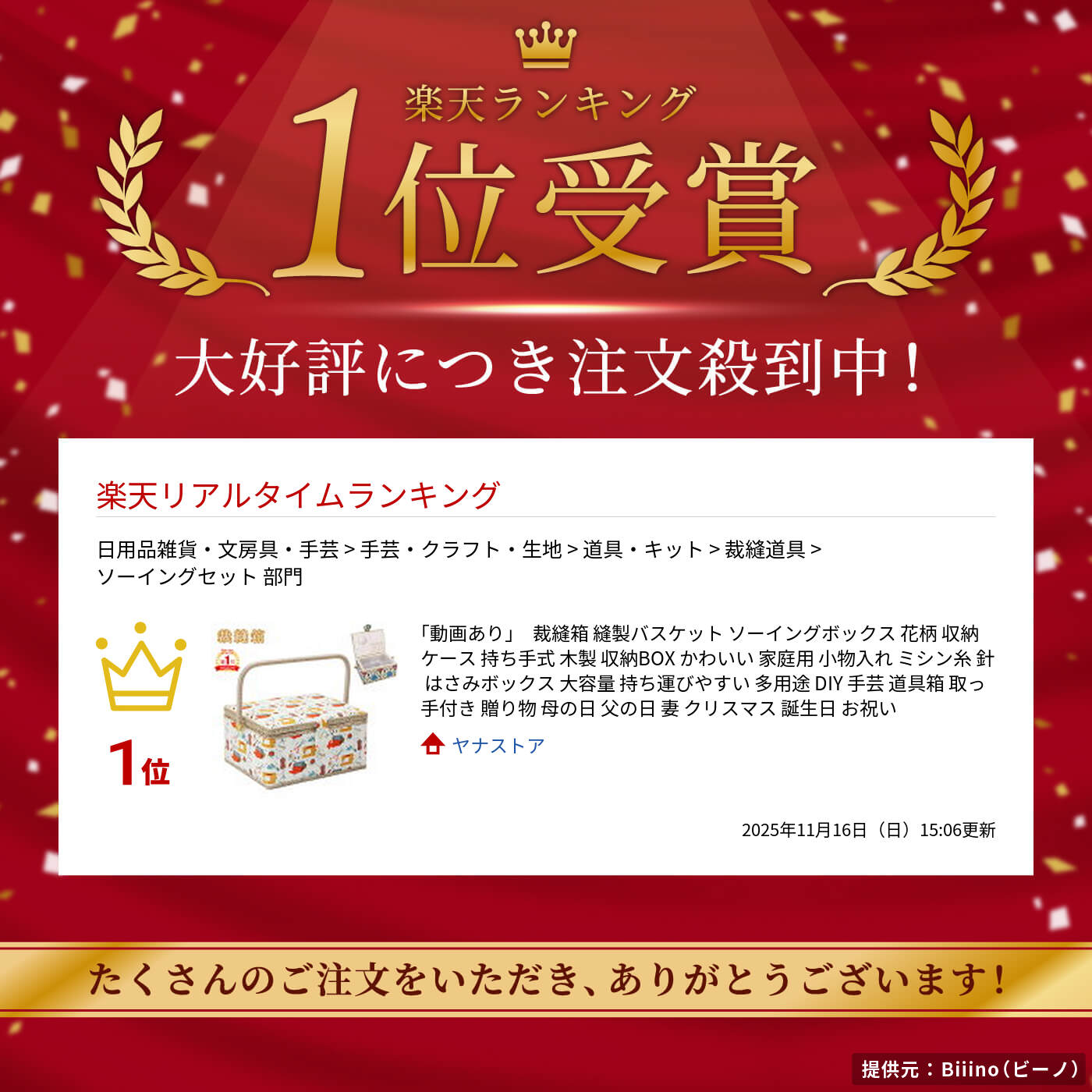 「動画あり」 裁縫箱 縫製バスケット ソーイングボックス 花柄 収納ケース 持ち手式 木製 収納BOX かわいい 家庭用 小物入れ ミシン糸 針 はさみボックス 大容量 持ち運びやすい 多用途 DIY 手芸 道具箱 取っ手付き 贈り物 母の日 父の日 妻 クリスマス 誕生日 お祝い
