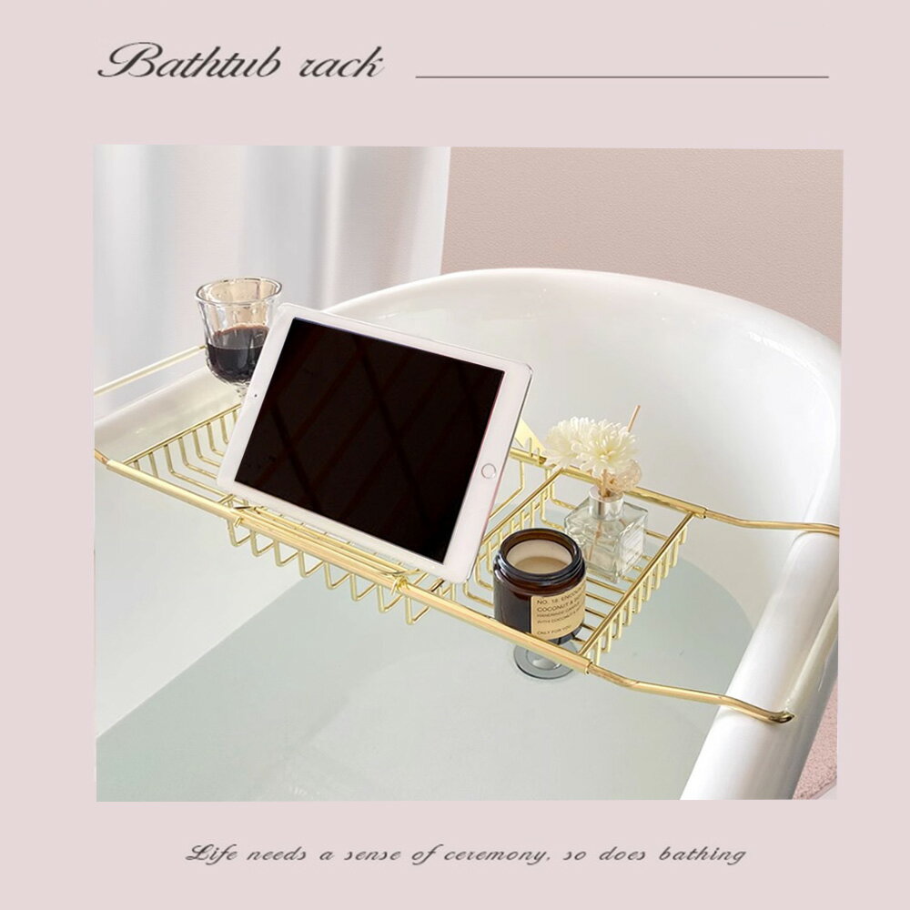 【ポイント最大20倍 クーポン発行中!】バスタブトレー 伸縮 バスタブテーブル バスタブラック バスラック トレー シンプル おしゃれ ゴールド バステーブル バスグッズ ステンレス スマホ 半身浴 リラックス お風呂 テーブル 浴槽 ズレ防止 スライド式