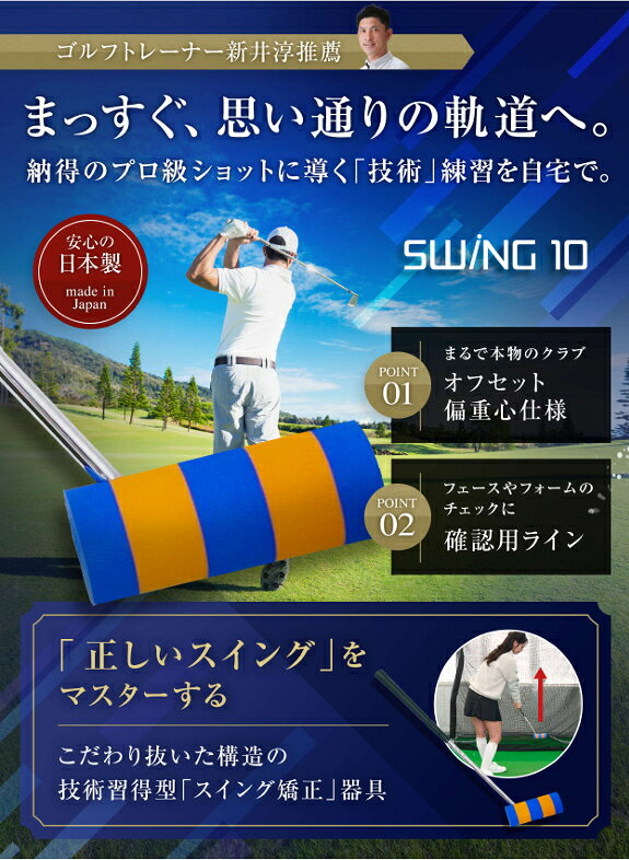 SWING10 スウィング10 ゴルフ練習器具 ゴルフ用品メーカーが作ったスイング練習器具 (実際のクラブと同じ偏重心で本物のクラブと同じ感覚を再現)スウイング安定 初心者 プロ使用