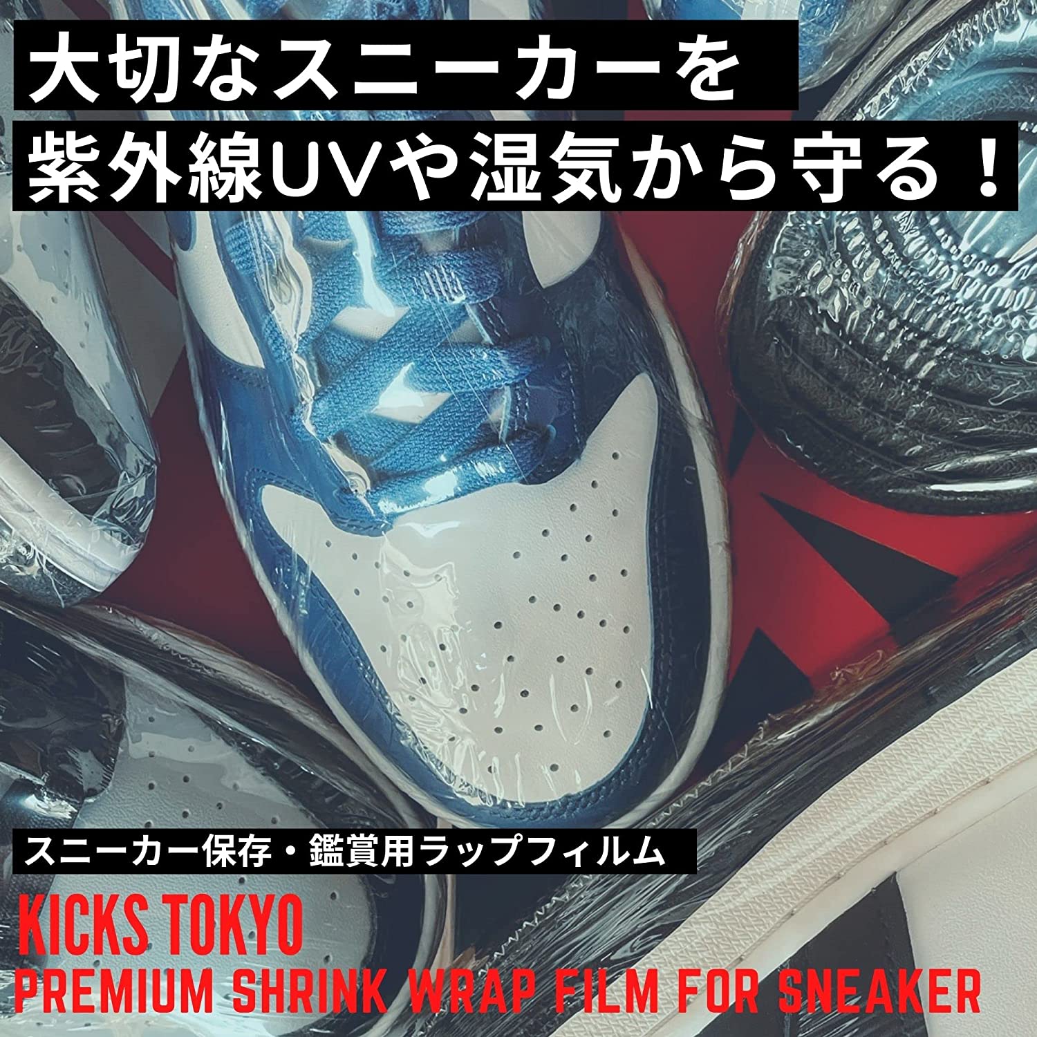 KICKS TOKYO(キックストーキョー) スニーカーラップフィルム 10枚入 スニーカー用プレミアム保護フィルム 商品情報 商品説明 【スニーカー用プレミアム保護フィルム】東京発のブランド“KICKS TOKYO”のスニーカー保管・鑑賞用の透明シュリンクフィルム(10枚入)。スニーカーを保管する際に天敵となる紫外線や湿気からスニーカーをしっかりと守ります。【上級グレードなプレミアムラップ】フィルムは、食品や医薬品などの保管にも使われる特殊なプレミアムUVカットラップを採用。スニーカー保管時に悩みの種となる、ソールの加水分解、退色、黄ばみ、劣化などから大切なスニーカーを保護します。また、貴重なスニーカーへの指紋やホコリの付着の対策としてもオススメ。【日本製フィルムだからこその品質】日本のフィルムメーカー工場にて製造したオーダー商品。日本工場だからこその品質と安心感。0.03mmという厚さとは思えない頑丈さを備えているため、破れにくい。それでいて、UVカット、低温収縮と使いやすく高機能。【波長の短い紫外線をカット】スニーカーの退色・劣化の原因ともなる波長:280nm~380nmの紫外線。太陽光はもちろん、蛍光灯などからも発生しているため、スニーカーを室内に保管しているからといって安心するのは良くありません。本プレミアムフィルムは、同タイプのUVカットのない通常タイプと比較したところ、280nm~380nmの紫外線を約80%ほどカット!スニーカーの退色、劣化、色あせを防ぐ働きがあるのです。 【ヒートガン不要!家庭用ドライヤーで収縮】シュリンクフィルムによってはヒートガンを使わないと収縮しずらいものもありますが、本商品は家庭用ドライヤーでも十分にシュリンクできる低温タイプ設計。ヒートガンを使わなくても、家庭用ドライヤーでしっかりとシュリンクします。【30cmまでの大型ハイカットにも対応】フィルムのサイズは450mm×300mmと大型仕様。そのため、~30cmほどのサイズの靴までであればシュリンク可能です。なお、30cm以上でもローカットタイプであればシュリンクできるケースもあります。【東京発!スニーカーケアプロダクト】CAST A SPELL ON SNEAKERS(スニーカーに魔法をかける)をテーマに、価値あるスニーカーをよりクールに、より長く履きたい。そんなスニーカーフリークのためのブランド“KICKS TOKYO”。メイドインジャパンでの製造にこだわり、品質の高いスニーカーケア用品をラインアップ。 仕様 容量:10枚入本体サイズ:約450mm×300mm日本製 ※ラッピングは行なっておりませんのでご了承ください。 ※商品によっては、お時間を頂く事がありますがご了承くださいませ。