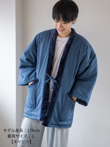 11/14-11/16 ポイント10倍!【ドビー織×裏ボア】【あったか中綿入り】紳士はんてん(半纏) メンズ 和風ルームウェア 軽量 洗える 秋冬 防寒 部屋着 散歩にも◎