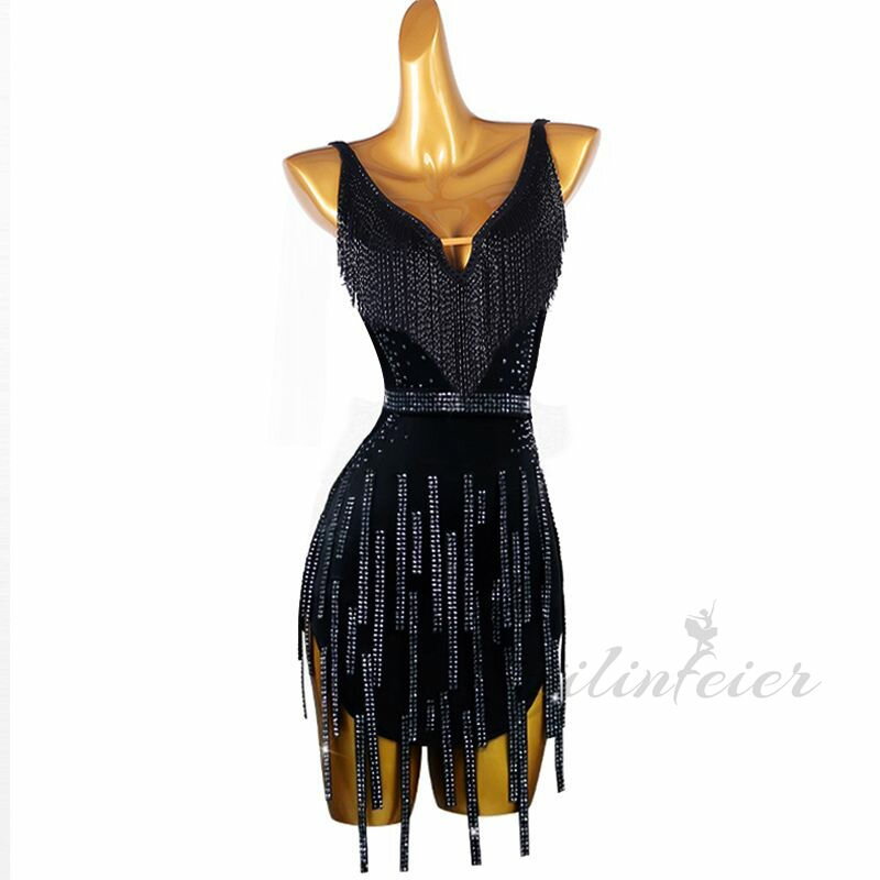 【セミオーダー可】ラテンダンス ラテン バックレスドレス ダンス衣装 袖なし ラテンドレス レオタード フリンジスカート パーティードレス ワンピース ラテン専用ドレス レッスン着 スカート スタンダードドレス 競技 練習 演出 高級感 デモ用 発表会 練習用 海外通販