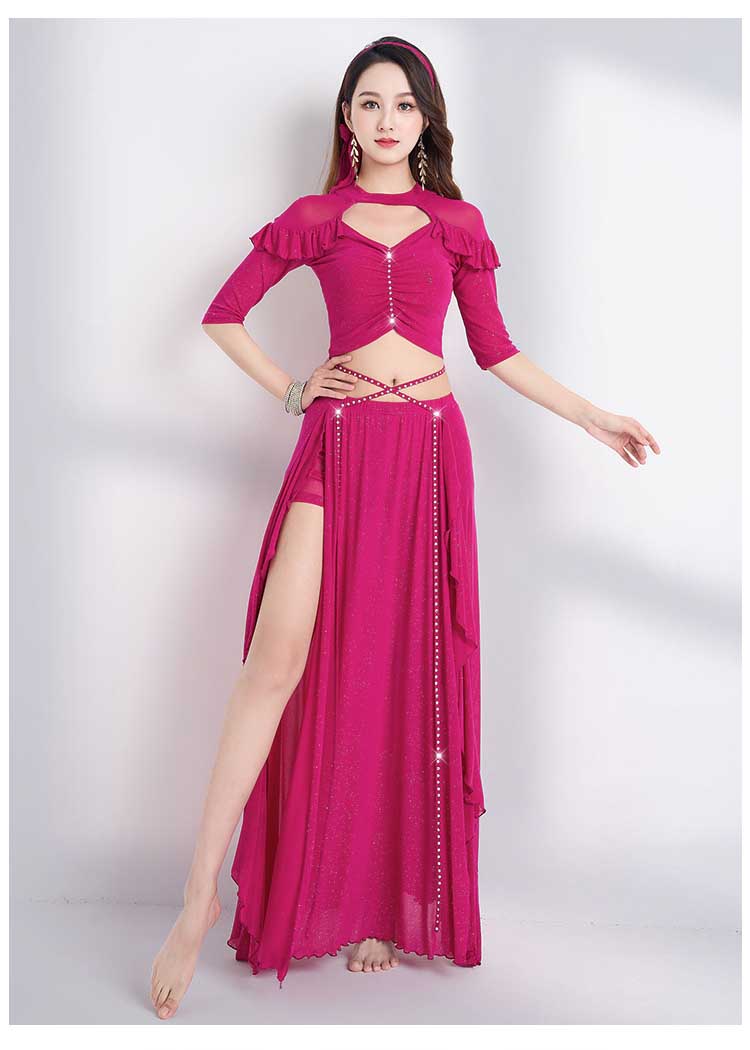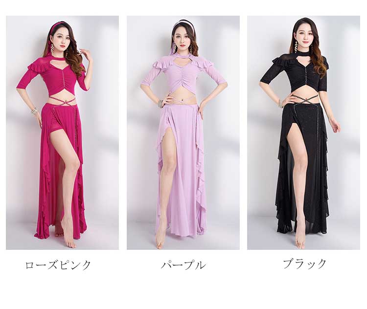 ベリーダンス ダンス衣装 セット ハロウィン コスプレ 仮装 パーティー 余興用 レッスン着 トップス スカート ヘアバンド3点セット 社交ダンス 発表会 ラテンダンス 演出 団体 揃え