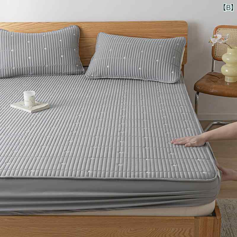 ベッドカバー 防水 防ダニ 厚手 ベッドシーツ マットレスカバー 無地 洗える ずれ防止 90 120 150 180 200cm 水洗い綿 枕カバー付き・製品カテゴリ: ベッドシーツ・柄: 無地・模様: 星・サイズ: 90*200cm・サイズ: 120*200cm・サイズ: 150*200cm・サイズ: 180*200cm・サイズ: 200*220cm・セット内容: ベッドシーツ単品・セット内容: ベッドシーツ3点セット(枕カバー付き)・織り方: キルティング・染色方法: 反応染め・素材: 水洗い綿・ベッドサイズ: 121.92cm・重量: 約 1000g~1500g・スタイル: 和風・種類: ベッドカバー・色: 雅白・色: 安娜粉・色: 柏林灰・色: 奶糖咖・色: 云川绿・色: 奶油咖・色: 朴本白・色: 优雅粉