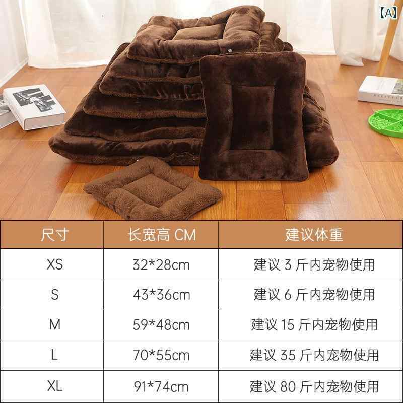 犬 猫用ベッド 冬用 あったか ペットマット クッション 座布団 厚手 コーヒー色 フランネル・素材: 布・カテゴリ: 座布団・色: コーヒー色(正面:フランネル/反面:舒棉绒)・対象: 犬・サイズ: XS-32×28cm, S-44×36cm, XL-91×74cm