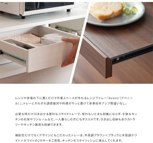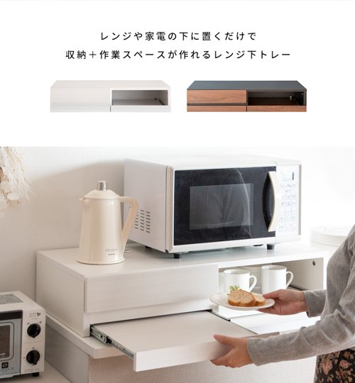 レンジ下トレー 2連 引出し付 レンジ下スライドテーブル 電子レンジ下 スライド式 幅80 収納付き 引き出し おしゃれ 北欧 お皿置き 白 新生活 Avenir ID004