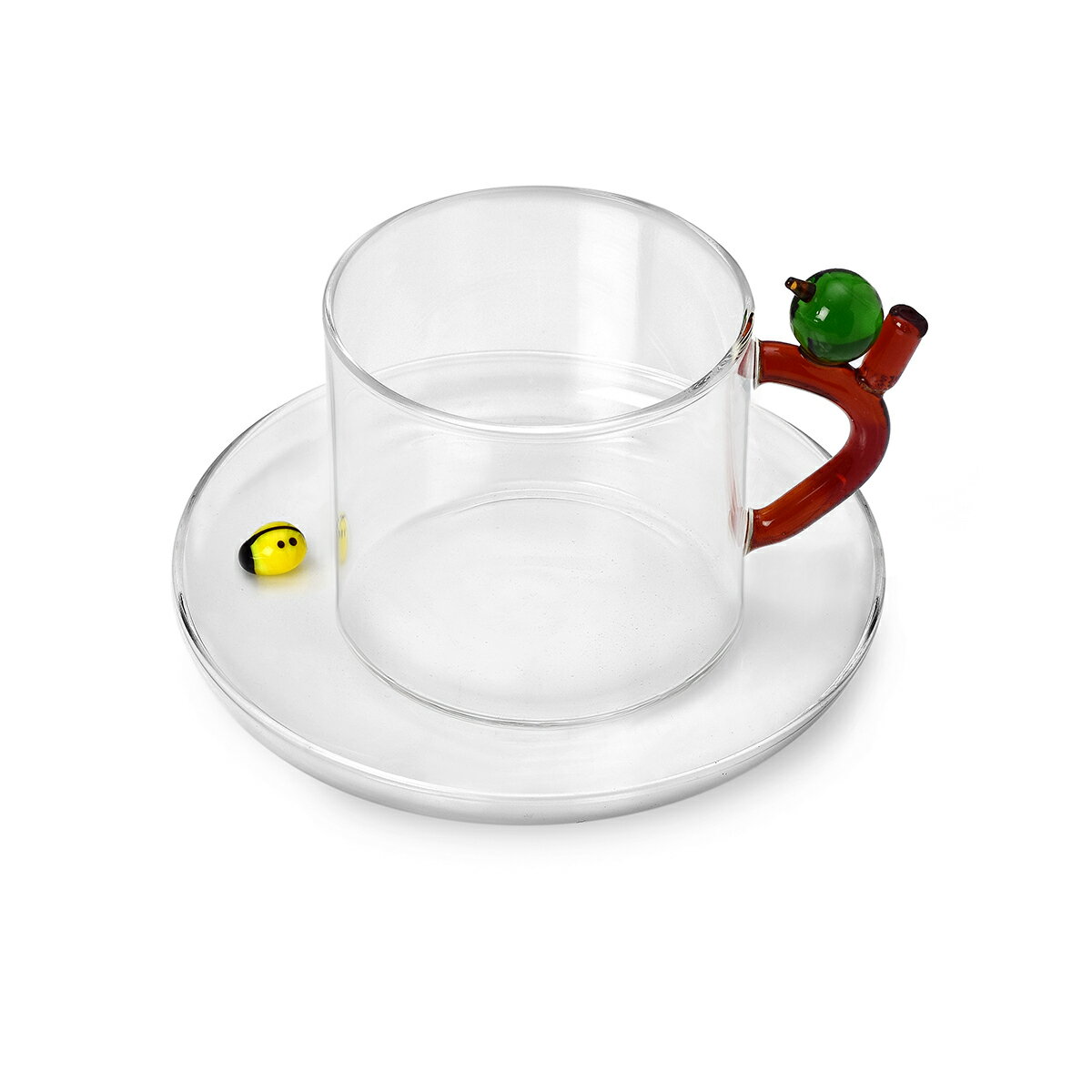 イッケンドルフ ミラノ ティーカップソーサー 青りんごとてんとう虫 ガラス 透明 耐熱ガラス おしゃれ ギフト イタリア ICHENDORF MILANO teacup w/ saucer apple アップル 紅茶 コーヒー アフタヌーンティー ハーブティー プレゼント