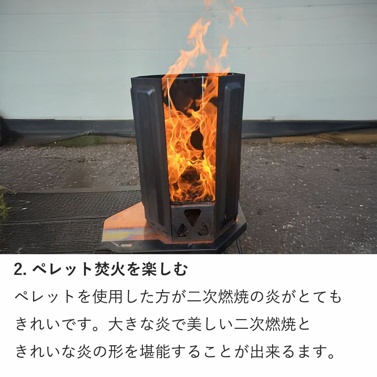 Pellet Grate for UM Fire Pit ペレットを使った焚き火を楽しむ 燃焼皿 受け皿 UM Fire Pitでペレットを使った焚き火を楽しむためのオプション。 ロストルの穴からペレットが落ちてしまうことを防止します。 大きな炎で美しい二次燃焼を楽しむことが可能です。 「UM Fire Pit本体別売り」 ペレットは、粉砕した木くずを圧縮した燃料なので、使いたい量だけ小分けにして持ち運び便利。 ペレットを使用した場合、二次燃焼の炎がとてもきれいです。 火力が強いので、大きくてキレイな炎を楽しむことが出来ます。 スペック 商品名:Pellet Grate for UM Fire Pit(燃焼皿のみ) 材質:スチール鋼板 商品サイズ:W260×D210×H25(梱包時) 商品重量:約0.2kg(梱包時)- Pellet Grate for UM Fire Pit - ペレットを使った焚き火を楽しむ 大きな炎で二次燃焼がさらに美しい UM Fire Pitでペレット焚火 UM Fire Pitでペレットを使った焚き火を楽しむためのオプション ロストルの穴からペレットが落ちてしまうことを防止します。 大きな炎で美しい二次燃焼を楽しむことが可能です。 持ち運びが便利 ペレットは、粉砕した木くずを圧縮した燃料なので、 使いたい量だけ小分けにして持ち運びが出来ます。 火力が強いので、大きくてキレイな炎を楽しむことが出来ます。 ペレットの燃焼 ペレットを使用した方が二次燃焼の炎がとてもきれいです。 二次燃焼の炎のきれいな形を堪能することが出来るます。 スペック 商品名:Pellet Grate for UM Fire Pit(燃焼皿) 材質:スチール鋼板 商品サイズ:W260×D25×H210(梱包時) 商品重量:約0.2kg(梱包時) 「UM Fire Pit」焚火台本体は別売りとなります。 大自然のなかでゆっくり過ごす時間は格別 機能的な装備を手に入れたなら キャンプがもっと楽しくなる