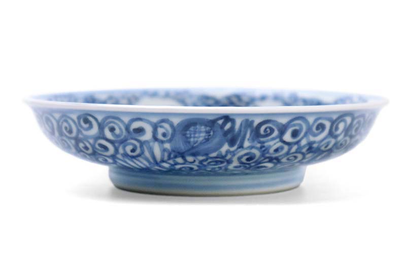 小鉢・浅鉢・小皿・染付 おおよそ直径13.5 × 高さ3.4cm □あわせておすすめしたい器たち□ →和食器の愉しみ 工芸店ようび TOP土山敬司さんに、店主が持つお気に入りの古染付を写していただきました。 同じ絵柄は「赤絵小鉢」と「染付7寸皿」です。絵付けの表情は様々です。 土山敬司さん 清水焼のメッカ五条坂のあたりは京都の作家さんたちが多く住んでおられ、昔は煙の上がっていない日がないと云われた程栄えたところでした。登り窯が廃絶し、作家さん、職人さん達もあちらこちらと散ってゆかれて土山さんも宝塚に御移居なさったと聞いています。 父上は屈指の職人さん、京都の第一級文化人(お医者さまで陶芸家、文筆家等々)加藤静允先生は、この工房で最初の技術を学ばれたのでした。その頃ご一緒にお父様の下で御修行なされたいわば同門の土山敬司さんを、大変腕のよい人だからぜひ、とご紹介下さいました。 さっそくわがままを言って芙蓉手のものたちをお願いしてみました。さすがのものたちが出来上がって参りました。一つは店主の持っておりました安南手の浅鉢、もう一つは明末の芙蓉手の写し大小です。 出来る限り本歌に近くとラフに画いていただいたつもりでも、やはり少しきっちりと出来上がりました。呉須の色も良い色に仕上がっています。食卓の上で凛とした存在感を発揮するようでうれしい作品です。文様がにぎやかなのに邪魔にならないのは芙蓉手といわれる一連のものの特長でしょう。大サイズのお皿は、7寸より少し大きいお皿であること、少し深さもあることで用途は広くなります。 ますますこのよい腕を生かしていただくものが出来ればと大いに期待しています。 店主 真木啓子
