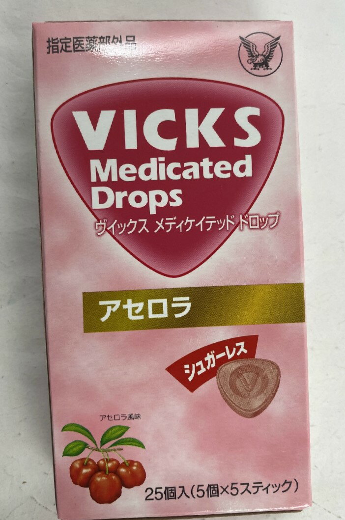 【×6箱 メール便送料込】大正製薬 ヴイックス メディケイテッド ドロップ シュガーレス アセロラ 25個入 シュガーレスタイプののど飴 4987306017801