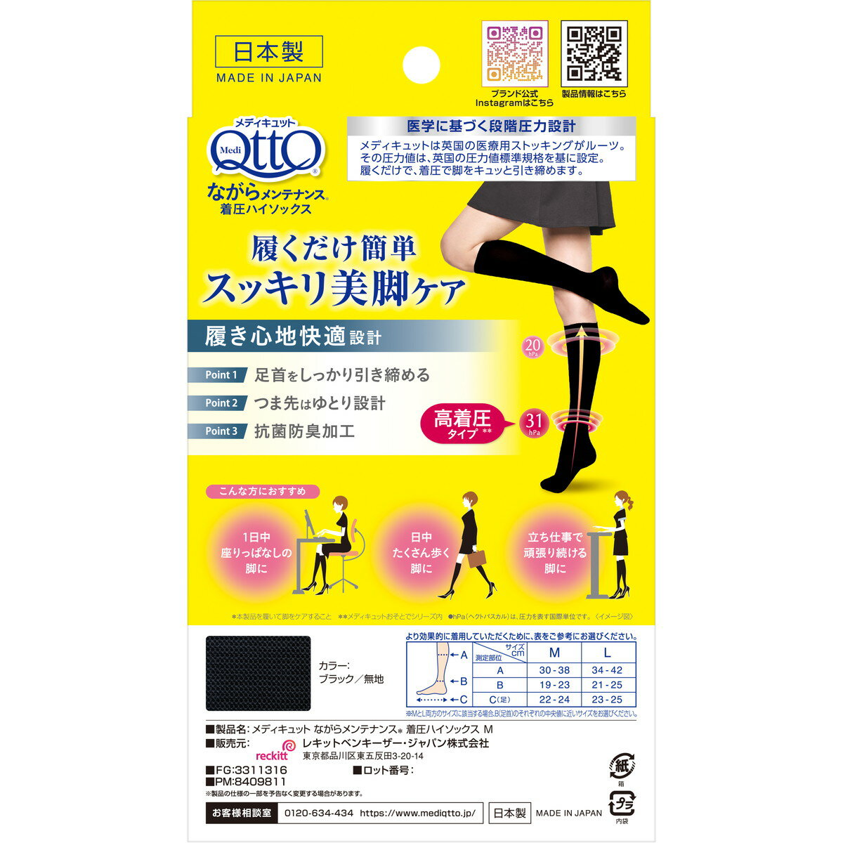 【送料込・まとめ買い×48個セット】レキットベンキーザージャパン メディキュット ながらメンテナンス 着圧 ハイソックス M