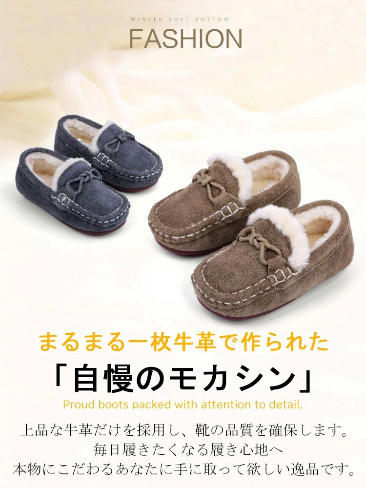 キ ベビー 裏起毛 暖かい 裏ボア 裏ファー ムートン 男の子 女の子 ジュース くつ モカシン 子供靴 】13cm-17.5cm モカシン